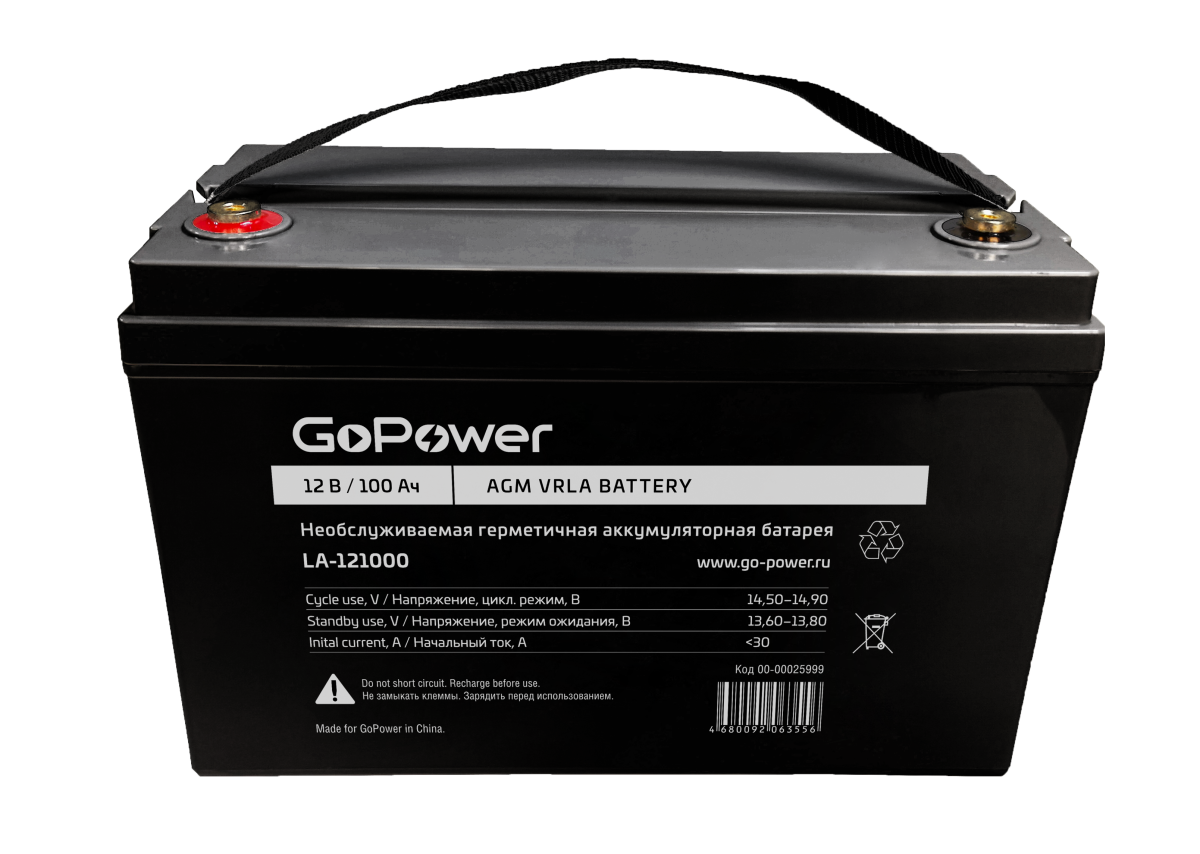 Свинцово-кислотные аккумуляторные батареи GoPower – полностью герметизированные, необслуживаемые, с системой рекомбинации газов (VRLA). Производятся по технологии AGM - электролит абсорбирован в стекловолоконном сепараторе, что обеспечивает абсолютную защищенность от утечки электролита. Материал корпуса и крышки сделан из огнеупорного ABS пластика. Аккумуляторные батареи GoPower отличаются широким диапазоном рабочих температур от - 20°С до +50°С и минимальным саморазрядом – не более 2,5 % в месяц при нормальных условиях.