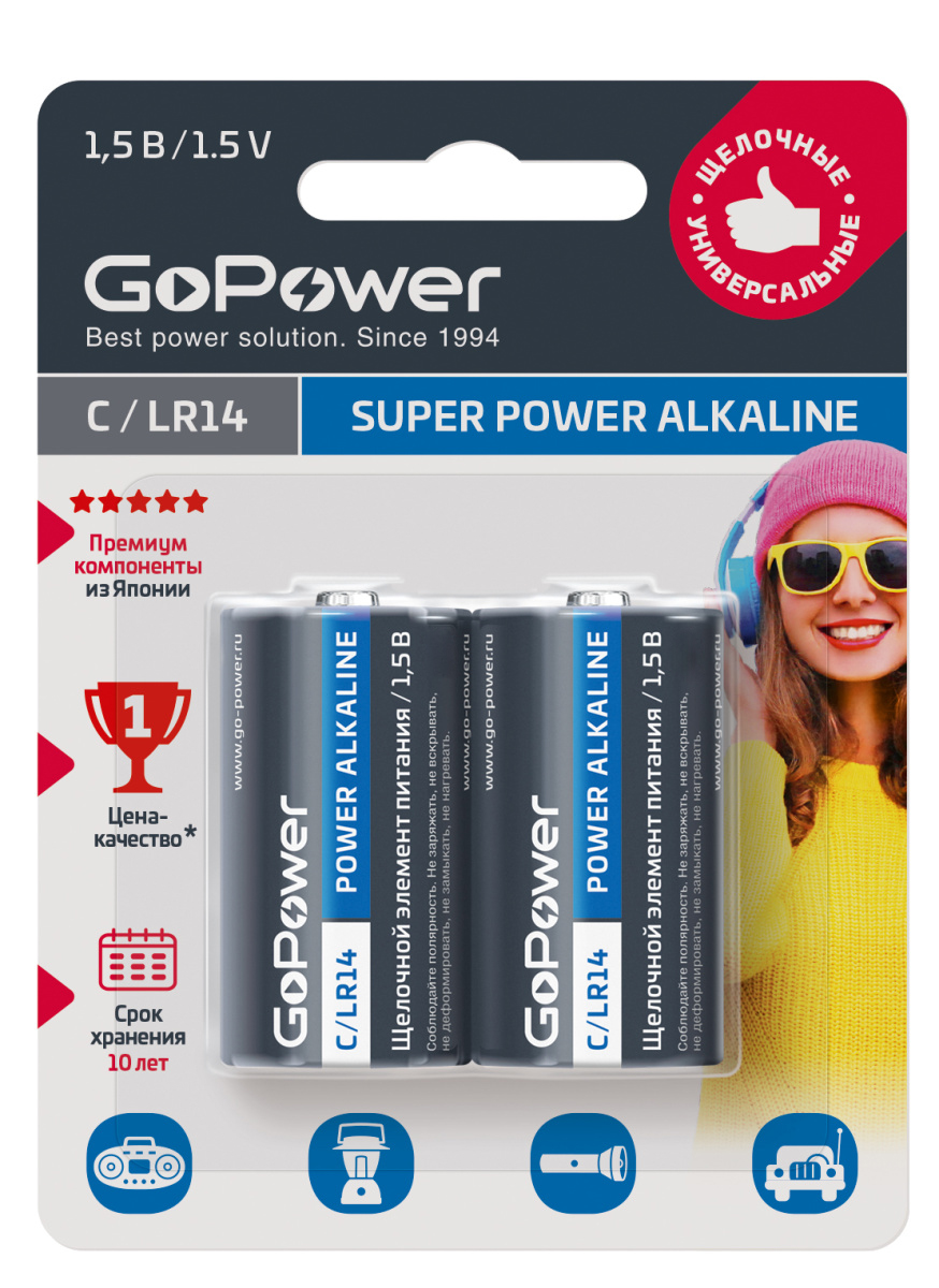GoPower С / LR14 Super POWER Alkaline Щелочной элемент питания 1.5V BL2